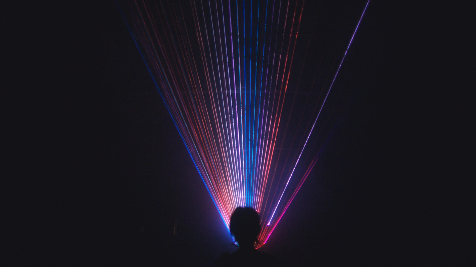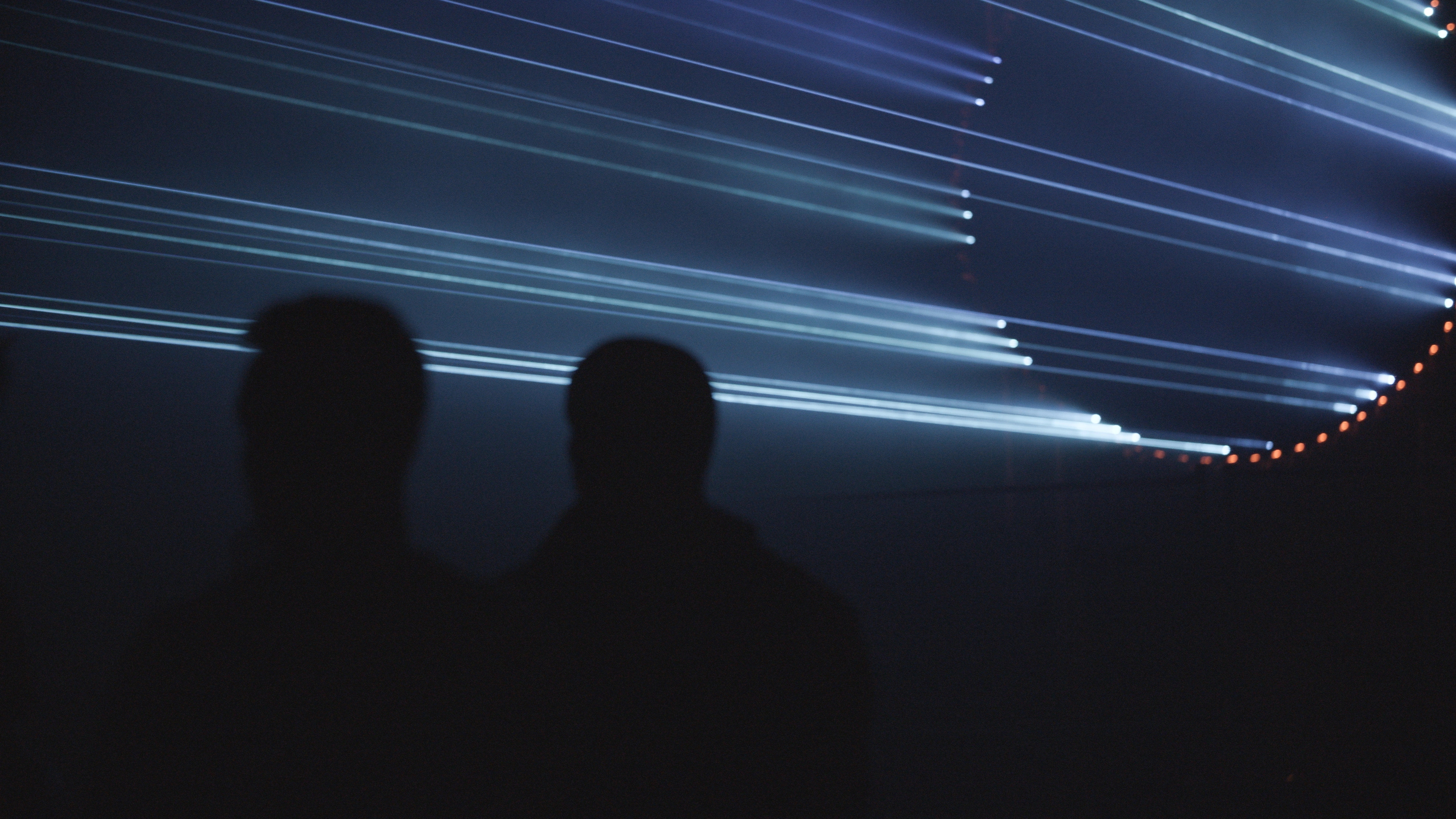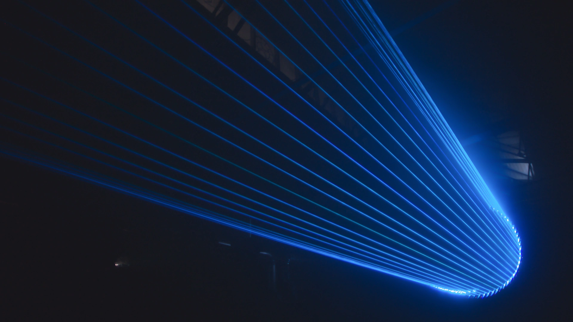 The light animation was prepared in a close interaction with sonic artwork that simulates rotation and the flow of energy through low-frequency rhythmic patterns mixed with high-frequency humming. As a programming environment for sound design, a modular synthesizer synchronized with the lasers’ programming via midi-to-cv interface. This combination of light animations, audible sounds and inaudible vibrations can be felt throughout the body and mind, creating a trance-like sensation of being isolated from the passage of time.